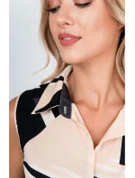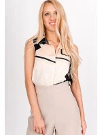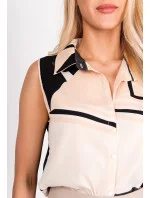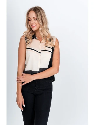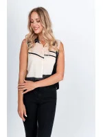 Dámská top s ramínky, řetízkem a geometrickým vzorem béžová + černá