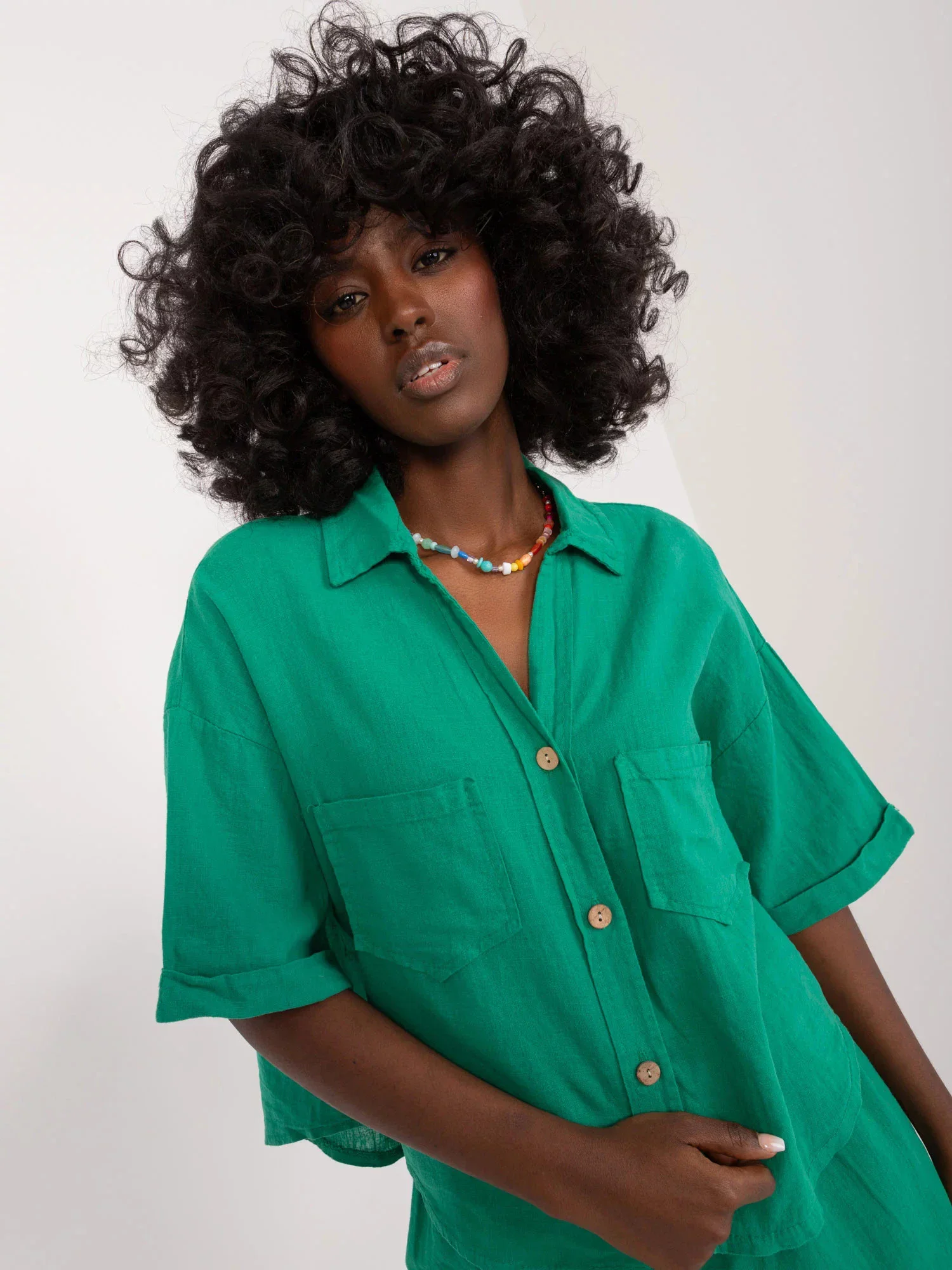 Dámská krátká košile na knoflíky. Na prsou kapsy.