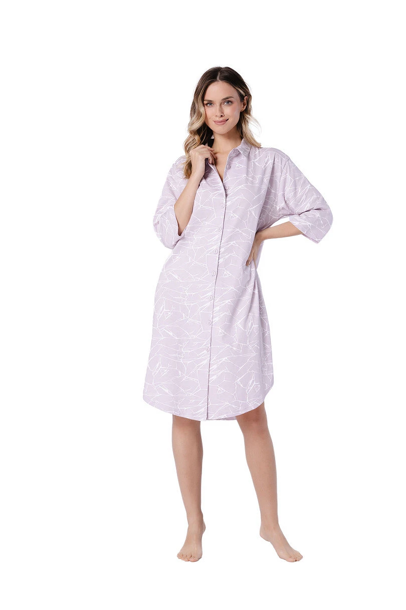 Dámská košile ŻAKLINA 1707 značky LEVEZA je jedinečnou kombinací pohodlí, přírodních materiálů a jemné elegance. Model je vyroben ze 100% bavlny pro prodyšnost a pohodlné nošení, takže se skvěle hodí jak pro každodenní domácí relaxaci, tak jako stylová noční košile.