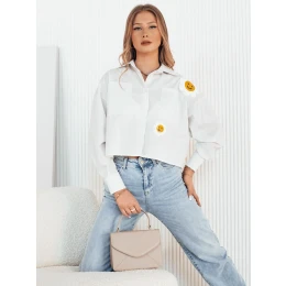 Tato košile s rozkošnými slunečními nášivkami je synonymem zábavného stylu a ležérnosti. Krátký střih se skvěle kombinuje s kalhotami s vysokým pasem a díky volnému střihu se pohodlně nosí po celý den. Je nezbytnou součástí šatníku každé ženy, která chce svému outfitu dodat nádech slunečních paprsků.