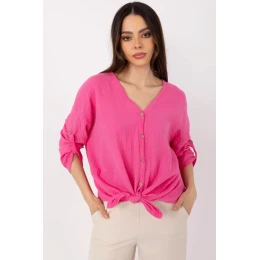 Dámská košile z mušelínové bavlny je lehký, prodyšný návrh v casual stylu ideální na každý den. Vyrobená z 100% přírodní bavlny, okouzlí měkkostí a pohodlím nošení, zejména v teplejších dnech. Hladká látka a klasický střih jí dodávají univerzální charakter, a výstřih ve tvaru srdce jemně zdůrazňuje krk, přidávajíc ženské kouzlo. Košile má 3/4 rukávy, co ji činí praktickou a skvěle se hodí po většinu roku. Standardní délka a zapínání na knoflíky umožňují nosit ji jak volně, tak zasunutou do kalhot nebo sukně. Skvělá volba pro každodenní outfit od kanceláře přes procházku až po setkání s přáteli.