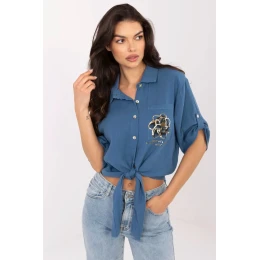 Elegantní dámská košile v casualovém stylu, ideální na každý den. Vyrobená z prodyšné přírodní bavlny, poskytuje pohodlí po celý den. Krátká délka a vázání dole jí dodávají lehkosti a dívčího charakteru, a 3/4 rukáv se skvěle hodí na teplejší dny. Košile se zapíná na knoflíky a je vybavena klasickým límcem, co jí dodává univerzální a volné vzhled. Na úrovni hrudi je praktická kapsa zdobená decentním potiskem, který dodává jemný a zároveň módní akcent.