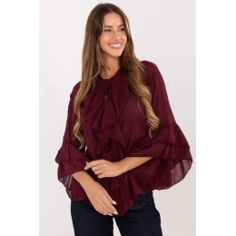 Elegantní a ženská klasická košile je kombinací elegance a pohodlí, ideální jak do práce, tak na každodenní i společenské události. Vyrobená z vysoce kvalitní bavlny poskytuje pohodlí a skvělou prodyšnost po celý den. Model se standardní délkou má 3/4 rukávy zakončené jemnými volány, které mu dodávají jemný romantický charakter. Kulatý výstřih a zapínání na knoflíky zdůrazňují klasický styl košile, a žabot na přední straně představuje elegantní akcent, dodávající celku výjimečný šarm. Hladký vzor zajišťuje, že se košile skvěle hodí k elegantním kalhotám, sukní nebo sako, vytvářející stylový outfit do kanceláře nebo na obchodní schůzky.