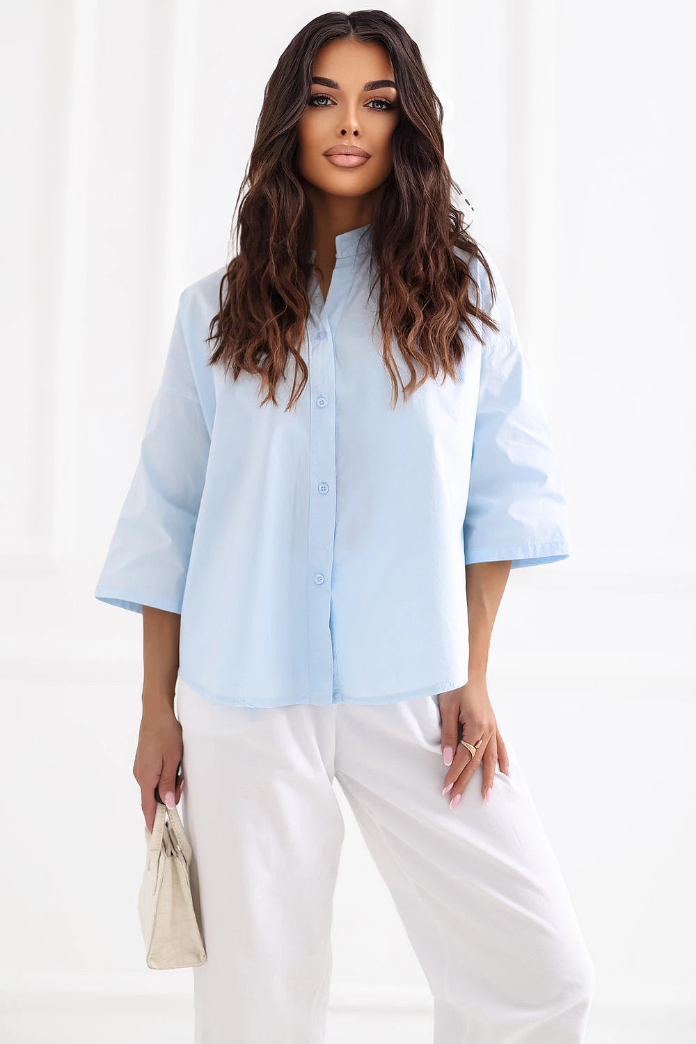 Košile dámská klasického střihu je elegantní a univerzální nabídkou, skvělou jak na každodenní nošení, tak i do práce. Její hladký vzor jí dodává nadčasový charakter, díky čemuž ji snadno sladíte s různými stylizacemi, od casual po formální. Model s kratší délkou se skvěle hodí k kalhotám s vysokým pasem nebo sukním, zdůrazňujíc proporce postavy. Košile se zapínáním na knoflíky zajistí pohodlí a praktičnost, a decentní stojka v kombinaci s výstřihem do srdce dodá celku moderní a ženský vzhled. Rukáv o délce 3/4 je skvělým řešením na teplejší dny nebo do práce v interiéru, poskytující pohodlí a volnost pohybů. Vyrobená z vysoce kvalitní bavlny je košile příjemná k pokožce, prodyšná a pohodlná k nošení po celý den. Jedná se o stylový a funkční kousek šatníku, který se osvědčí v mnoha každodenních i kancelářských stylizacích.
