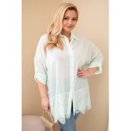Dámská košile Plus Size bavlněná s krajkovým zakončením mentolová