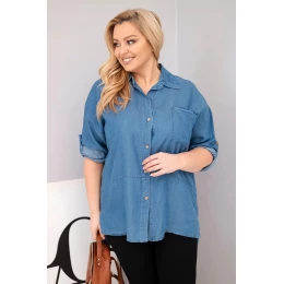 Dámská košile Plus Size z lyocellu s prodlouženým zadním dílem a rukávem na knoflík džínová