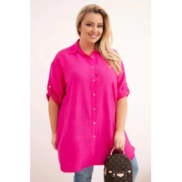 Dámská košile Plus Size z viskózy s delším zadním dílem fuchsie