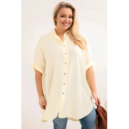 Dámská košile Plus Size z viskózy s delším zadním dílem žlutá