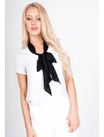 Halenka má jednoduchý střih v délce k bokům. Model má kulatý límeček a zapíná se knoflíčky.