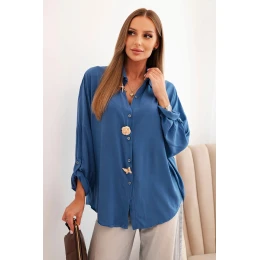 Dámská košile s viskózou a ozdobnými knoflíky a džínovým límcem modrá