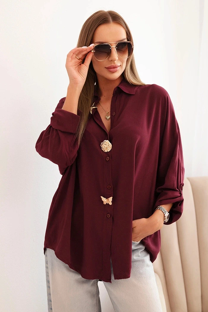 Dámská košile s viskózou a ozdobnými knoflíky a límečkem bordó