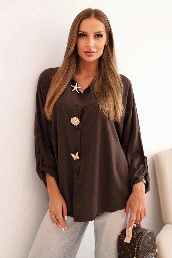 Dámská košile s viskózou a ozdobnými knoflíky a límečkem hnědá