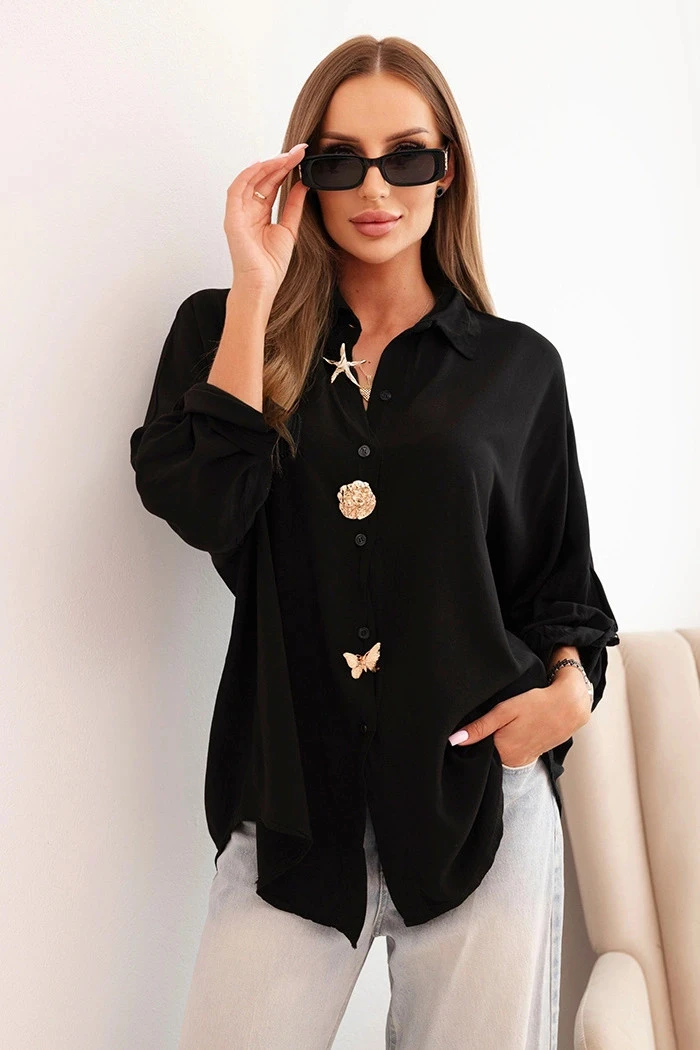 Dámská košile s viskózou, ozdobnými knoflíky a límečkem černá