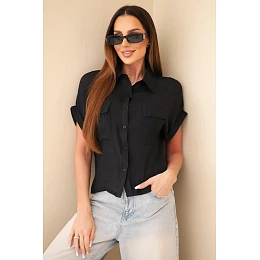Dámská košile z viskózy s krátkým rukávem a kapsami černá