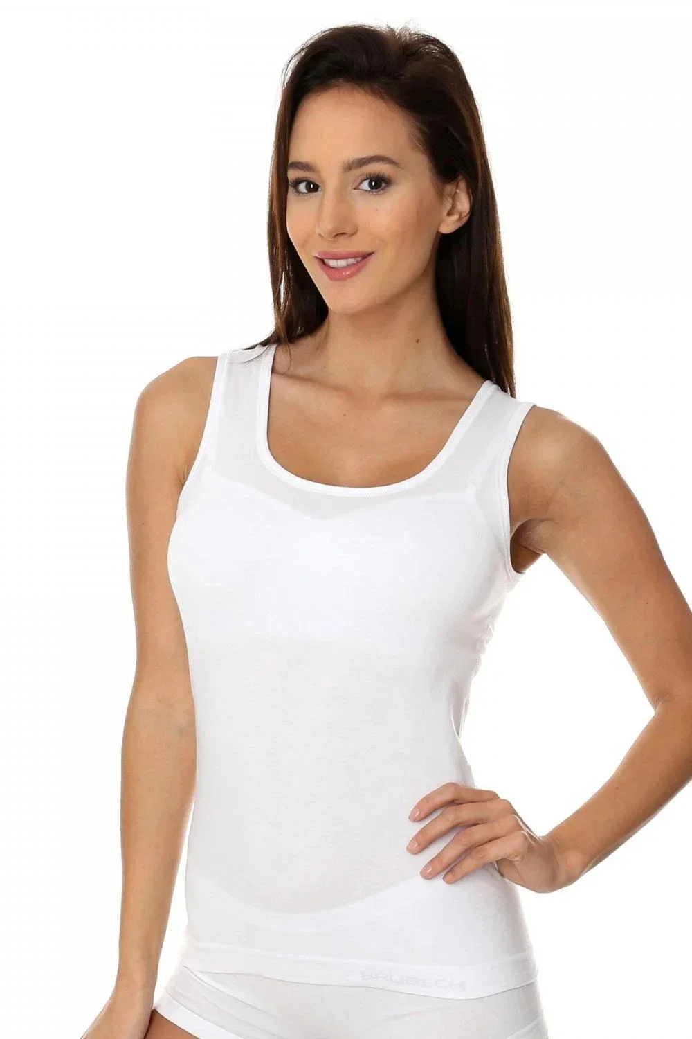 Fitness tílko 00510A white BRUBECK - bílá barva - vyrobená bezešvou technologií - ideálně přiléhá k tělu a zároveň chrání kůži před otěrem - rychlé odvedení potu ven, udržuje kůži suchou, je protialergická, rychle schne a nemusí se žehlit - bezešvé prádlo určené především na sportovní aktivity - firma Brubeck BodyGuard se zabývá výrobou oblečení pro extrémní sporty a využívá nejnovější technologie