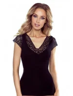 Dámske tričko Anna black plus ELDAR - černá barva - z vysoce kvalitní bavlny - krátké rukávy - výstřih a rukávy zdobené efektní krajkovou vsadkou