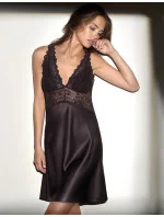 Exkluzivní saténová noční košilka v kombinaci s krajkou z kolekce Janira - Greta. Košilka je ozdobená nahoře i dole elegantní krajkou.