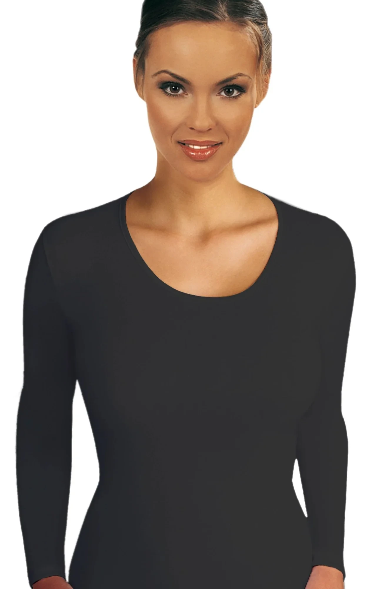 Dámská košilka Lena black EMILI - černá barva - z vysoce jakostní bavlny - dlouhé rukávy - bezešvá - ideální pod přiléhavé oblečení