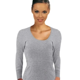 Dámská košilka Emili grey plus EMILI - šedá barva - z vysoce jakostní bavlny - dlouhé rukávy - bezešvá - ideální pod přiléhavé oblečení