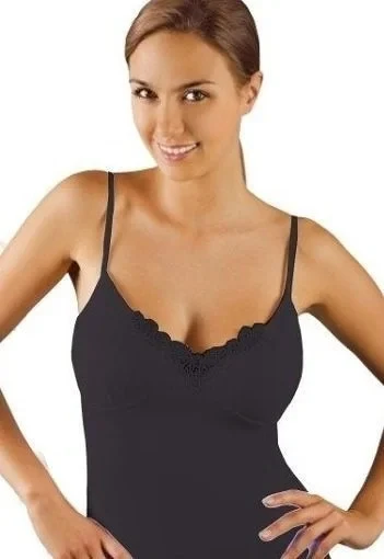 Dámská bavlněná košilka na úzkých, nastavitelných ramínkách. Pod prsy je prošívaná. Dekolt je zdobený šitou krajkou.