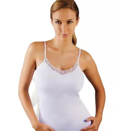 Dámská košilka ušitá z měkké 100% bavlny. Ve výstřihu je šitá krajka. Má tenká ramínka.