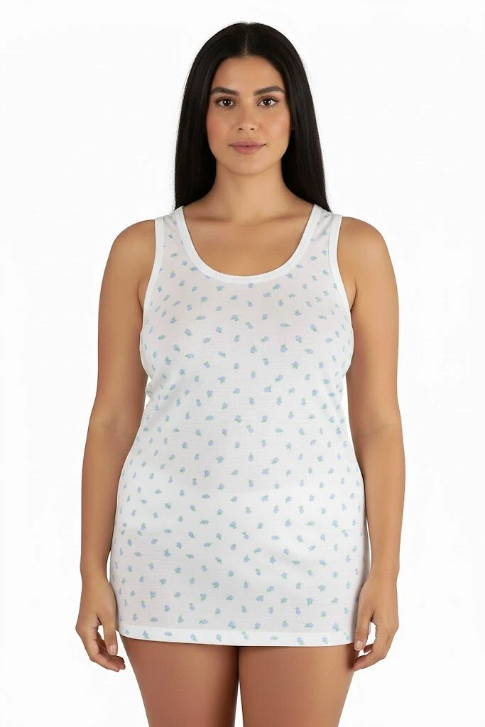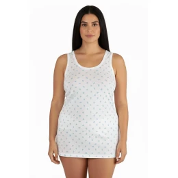 Bavlněná dámská košilka z vzorované látky, krátká, s širokými ramínky.