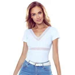 Dámská košilka Linda Eldar - z vysoce kvalitní bavlny - krátké rukávy - zdobená elastickou ažurovou páskou