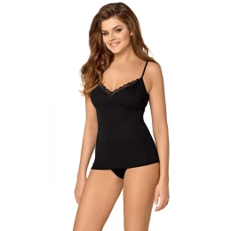 Dámská košilka Luna Babell - z kvalitní a velmi příjemné bavlny - černá barva - výstřih ve tvaru "V" - ozdobený krajkou s květinovým motivem - tenká ramínka - pohodlně se nosí