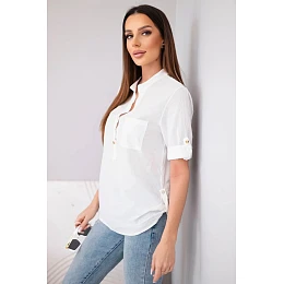 Dámská košilová bavlněná halenka s krátkým rukávem a kapsičkou bílá