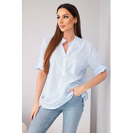 Dámská košilová bavlněná halenka s krátkým rukávem a kapsičkou modrá