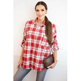 Dámská kostkovaná bavlněná košile s efektem obnošení červená
