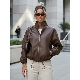 Dámská kožená bunda bomber TY5596 hnědá - FashionStreet