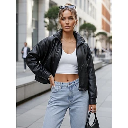 Dámská kožená bunda oversize černá FashionStreet TY5664