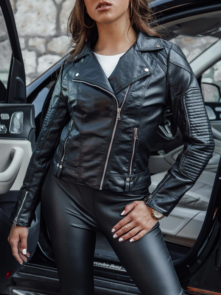 Dámská kožená bunda přechodná krátká ramoneska TELIS černá FashionStreet TY4556