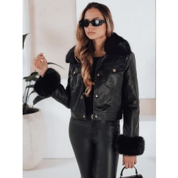 Dámská kožená bunda s umělou kožešinou černá TY5207