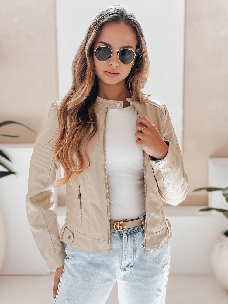 Dámská kožená bunda ROCKMISS beige FashionStreet TY5215