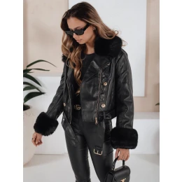 Dámská kožená bunda s kožešinou černá FashionStreet TY5209