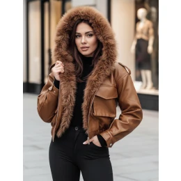 Dámská kožená bunda s kožešinou SOFTREBEL hnědá FashionStreet TY4761z