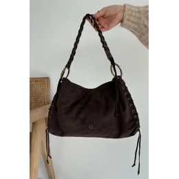 Dámská kožená semišová kabelka s ozdobným šněrováním Janelis – čokoládová
