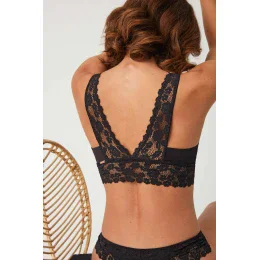Dámská podprsenka se vsazenými vložkami, bez kostic, spodní i zadní část z hrubé luxusní krajky.
