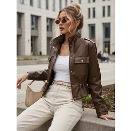 Dámská kožená bunda TY5666 hnědá
