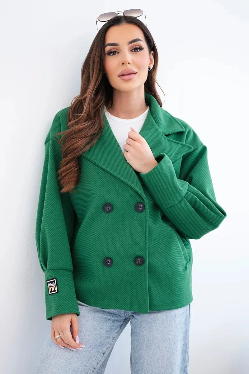 2. Dámská krátká dvouřadová bunda s límcem zelená