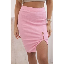 Dámská pruhovaná bavlněná sukně s rozparkem a ozdobnými knoflíky světle růžová