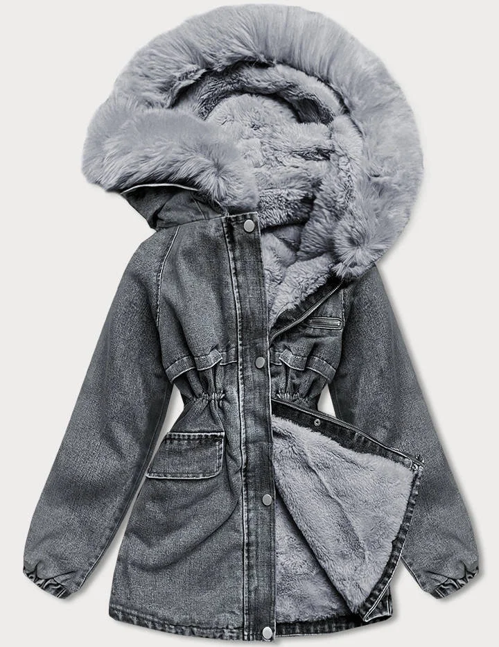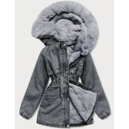 Černo/šedá dámská džínová bunda s kožešinovou podšívkou (br8048-109)