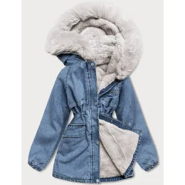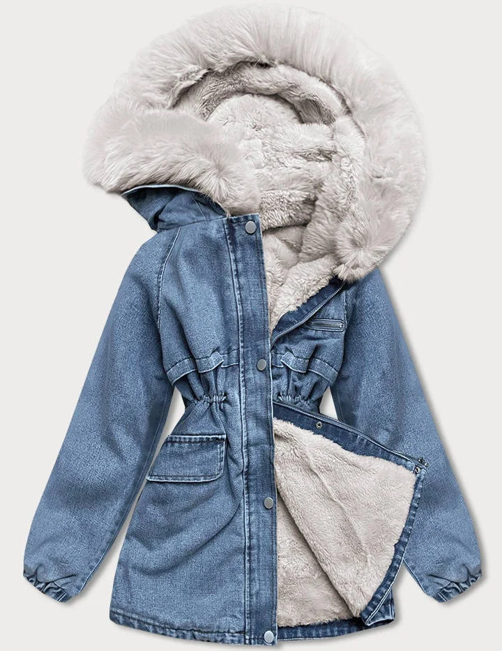 Světle modro/ecru dámská džínová bunda s kožešinovou podšívkou (br8048-50046)