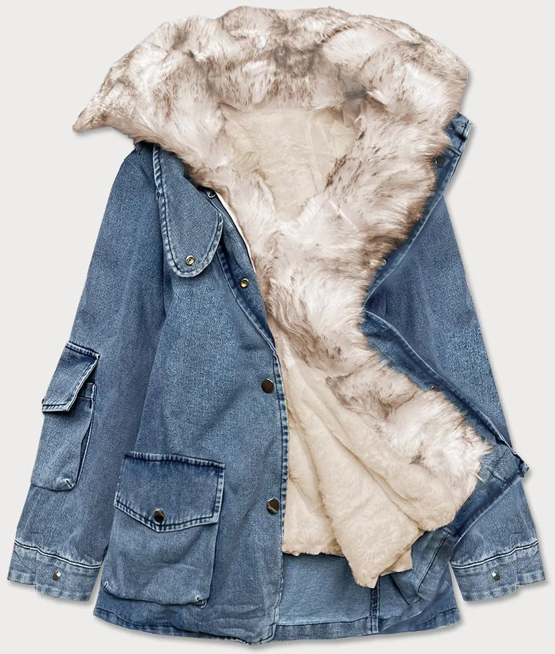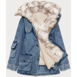 Světle modro/béžová dámská džínová bunda s kožešinovým límcem (br9585-50046)