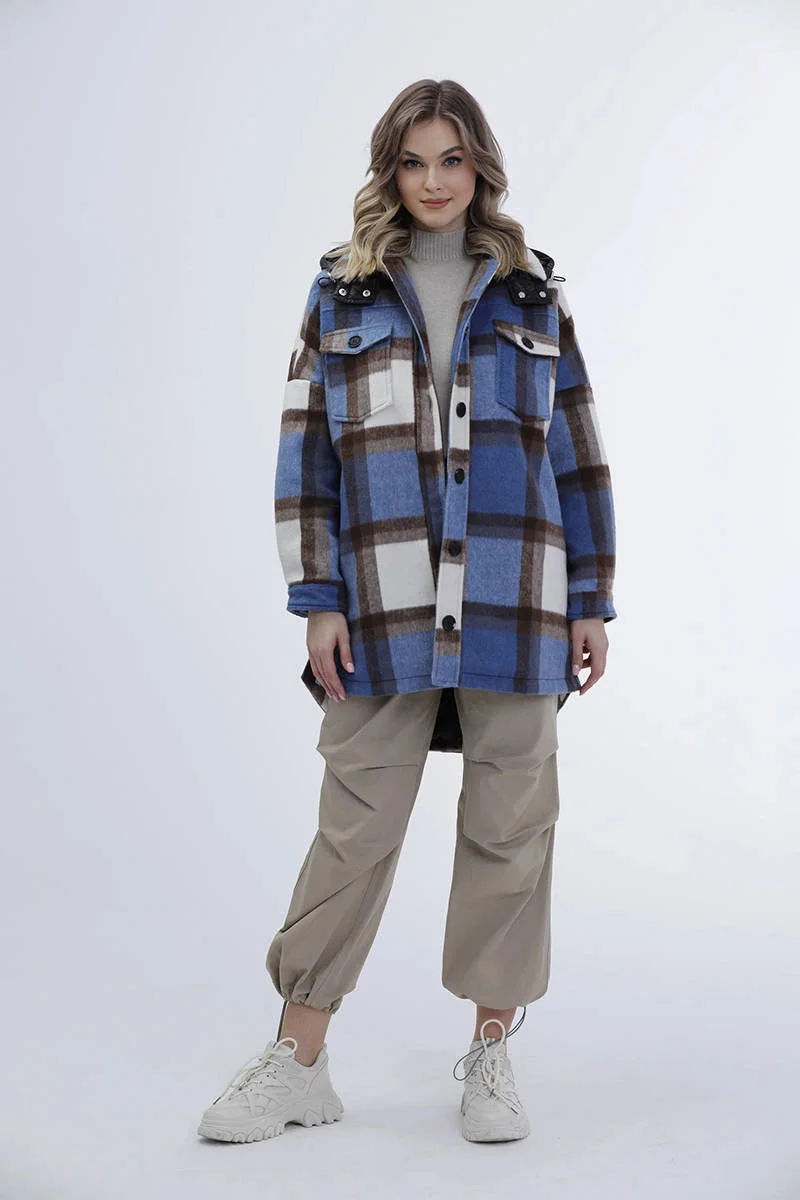 Světle modrá dámská károvaná košilová bunda (AG3-1813)