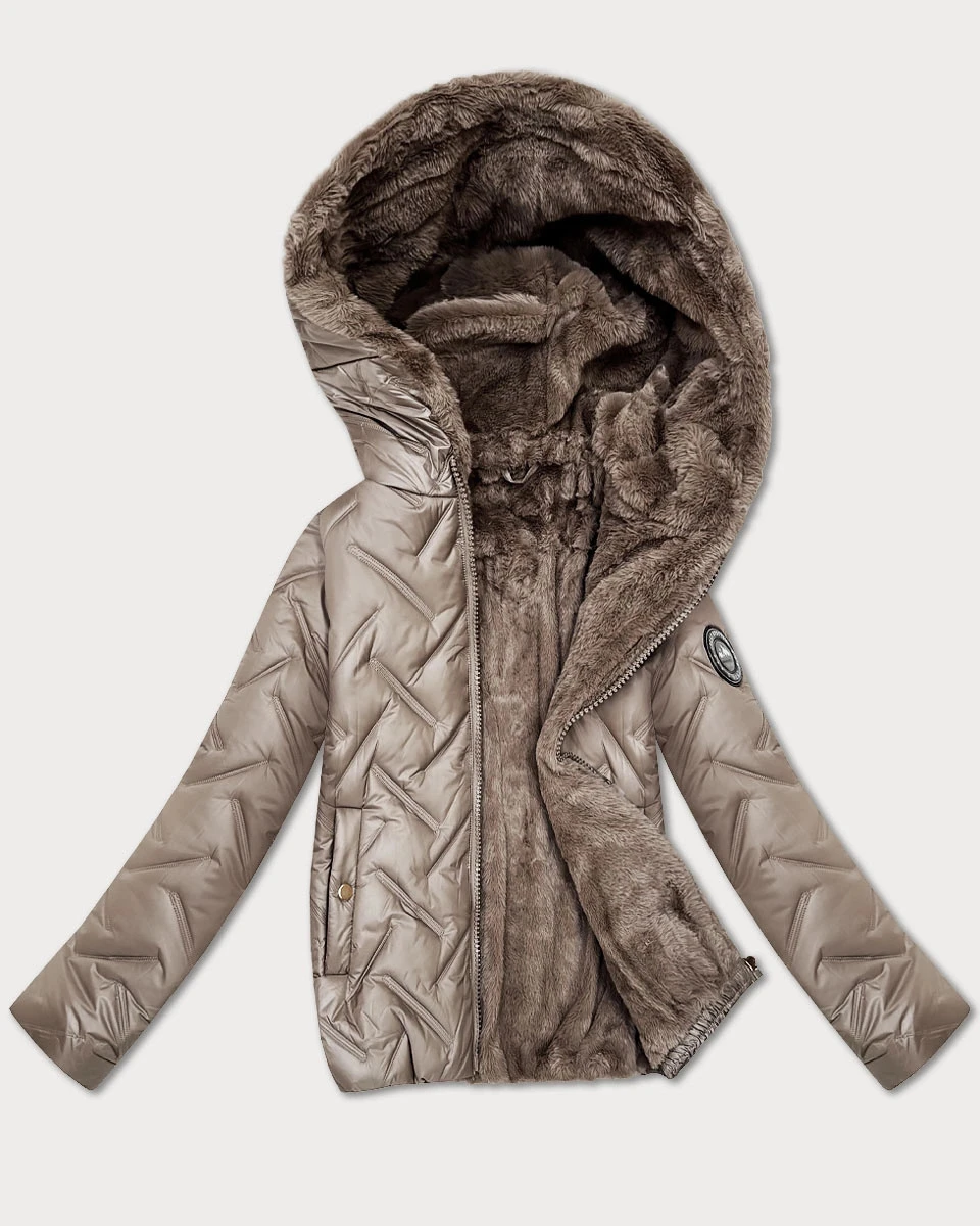Béžová dámská bunda s kožešinovou podšívkou S'West (B8389-12012)