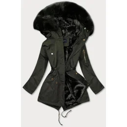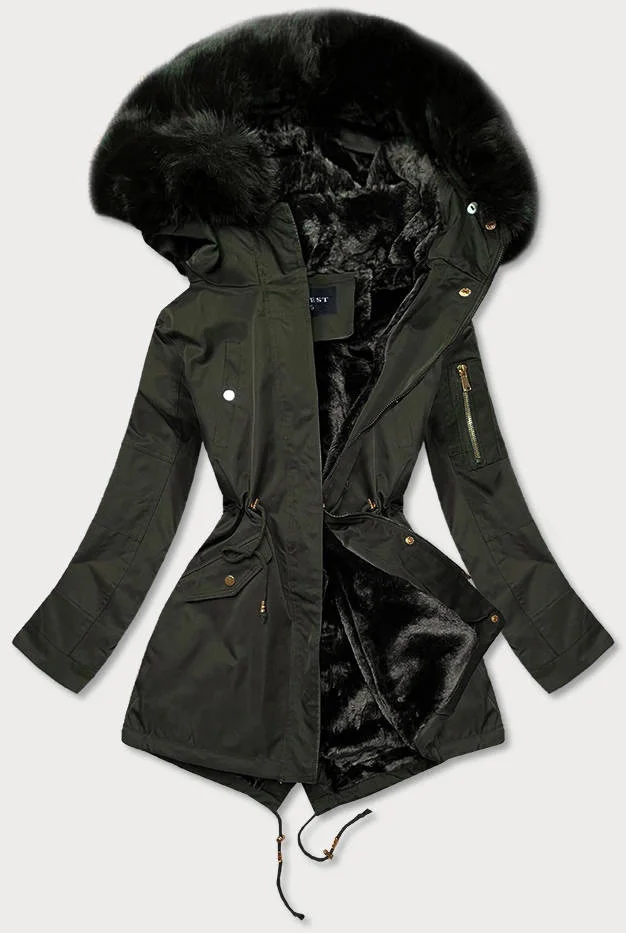 Dámská zimní bunda parka v barvě khaki s kapucí (b531-11)