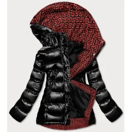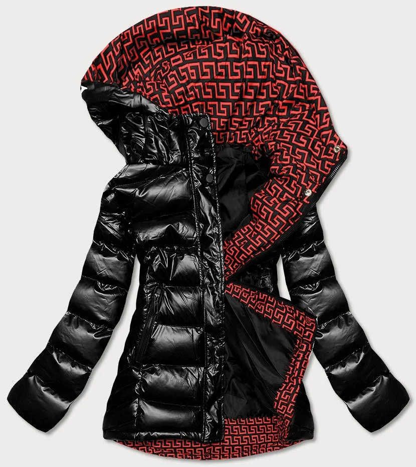 Černo/červená dámská prošívaná bunda s kapucí (xw817x)